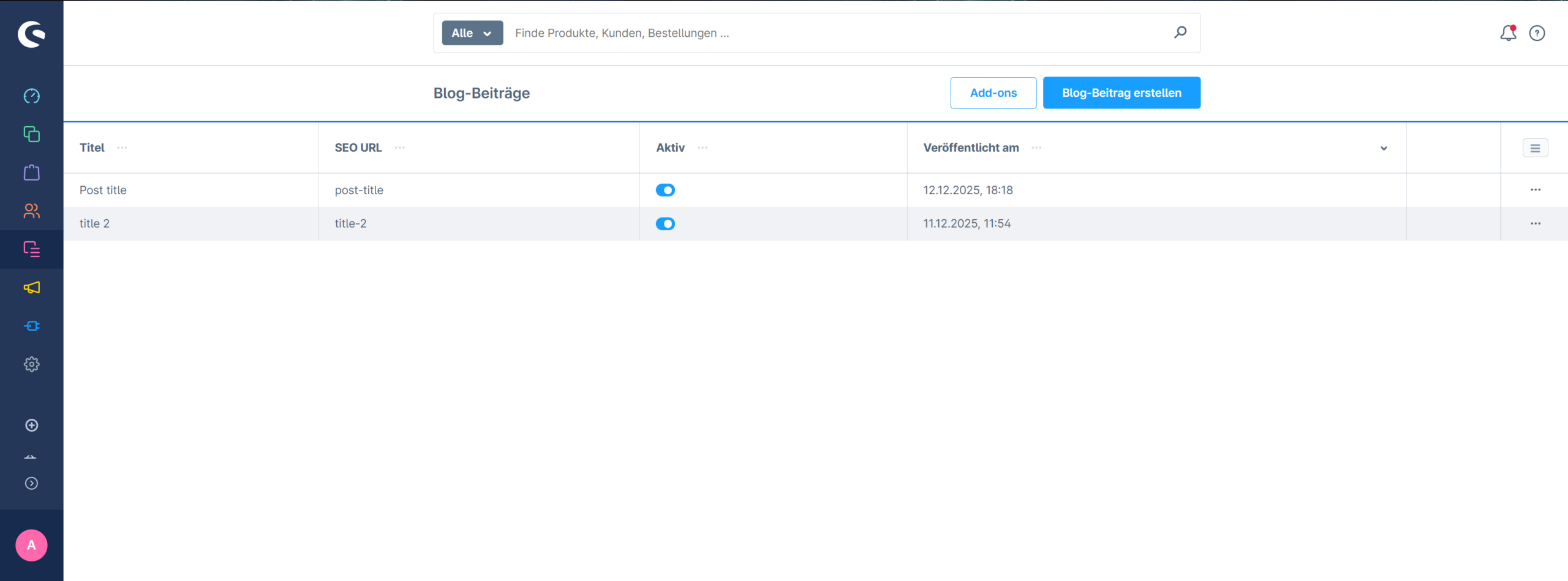 Nachdem du das Add-on gekauft hast, gehe zu „Inhalt > Blog-Beiträge“ und klicke oben rechts auf „Add-ons“ {Bild 2: Aktivierung}. Dort kannst du alle deine Add-ons sehen und aktivieren {Bild 3: Add-on Aktivierungen}.