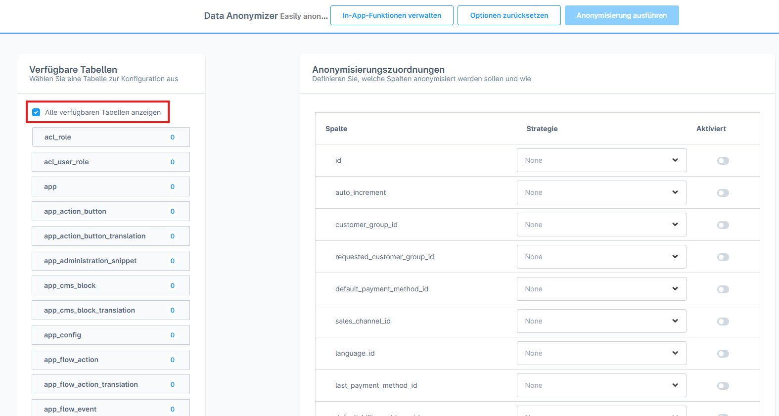 Dabei werden die ausgewählten Tabellen direkt in der Datenbank verändert und die Inhalte gezielt überschrieben bzw. verfremdet.